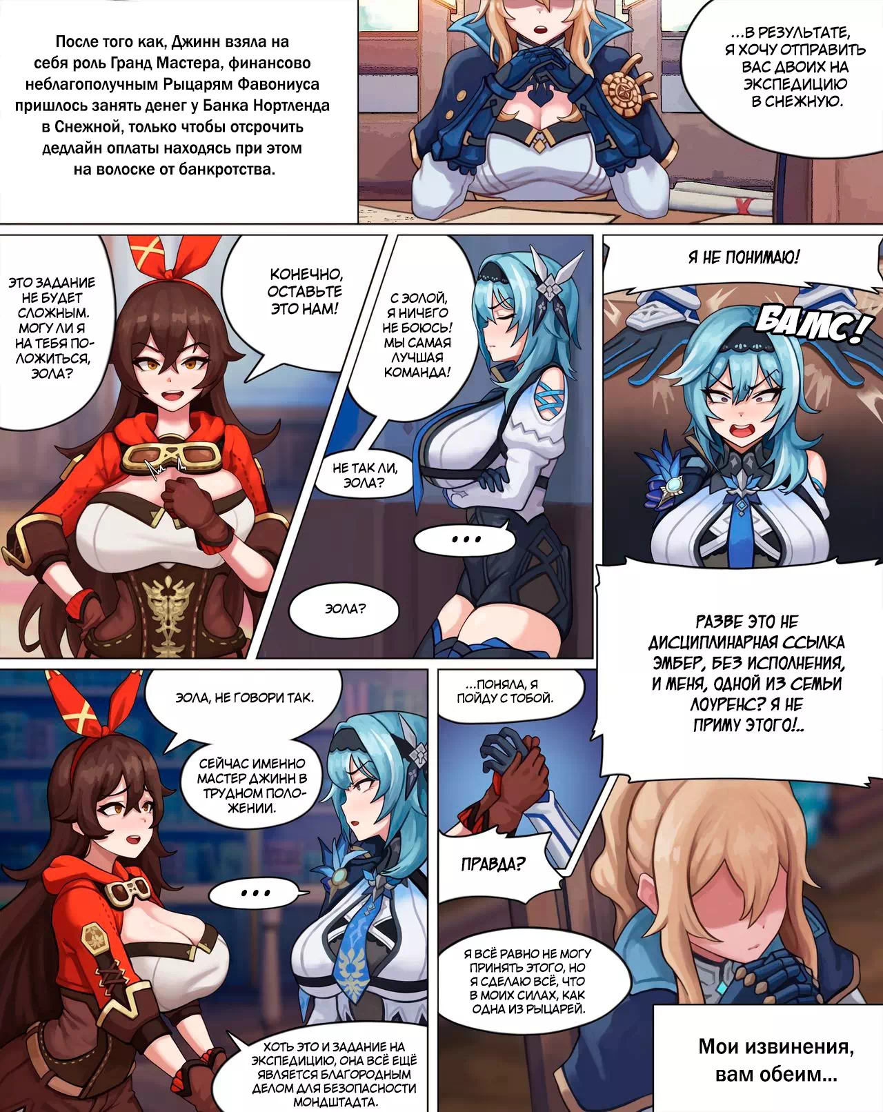 Порно манхва Genshin Impact: Секс-услуги от рыцарей Фавониуса Эолы и Эмбер. Часть 1