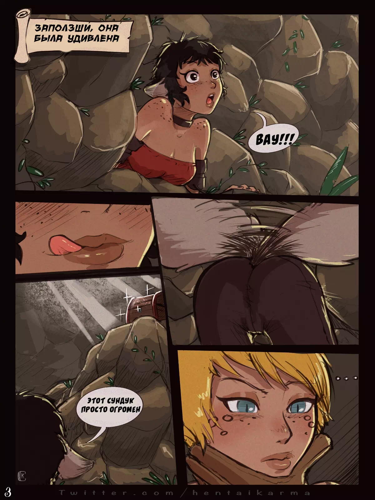Группа отчаянных искательниц сокровищ отправилась в очередное приключения, поиск клада начался стандартно – темная глубокая пещера, загадочные тени на стенах и прочие атрибуту, ну а закончилось всё жаркими потрахушками и полным фиаско.